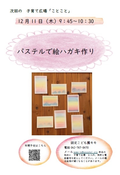モモの子育て広場「ことこと」では手を掛け、心を掛け、丁寧に人や物に関わることを大切にした場にしていきたいと思います。