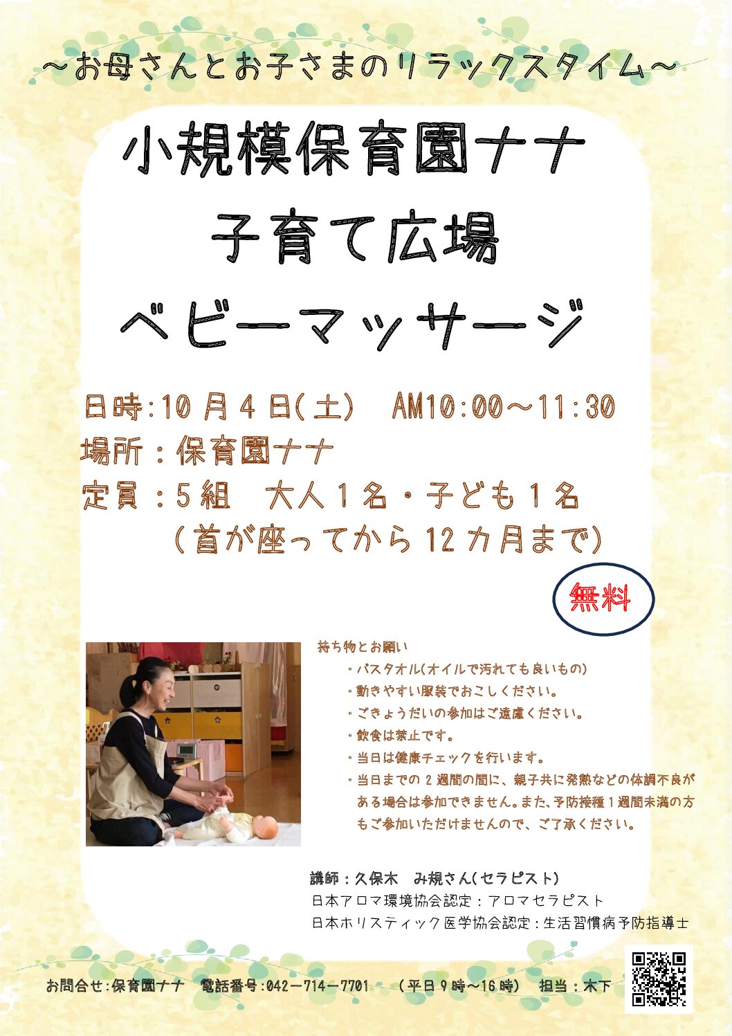 小規模保育園ナナ ベビーマッサージへのお誘い