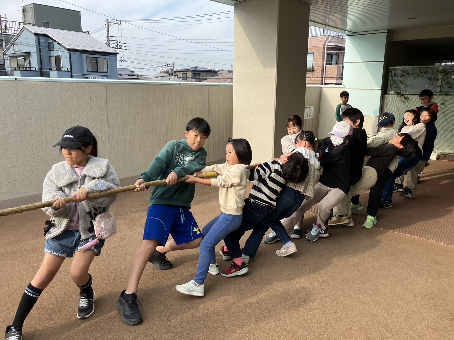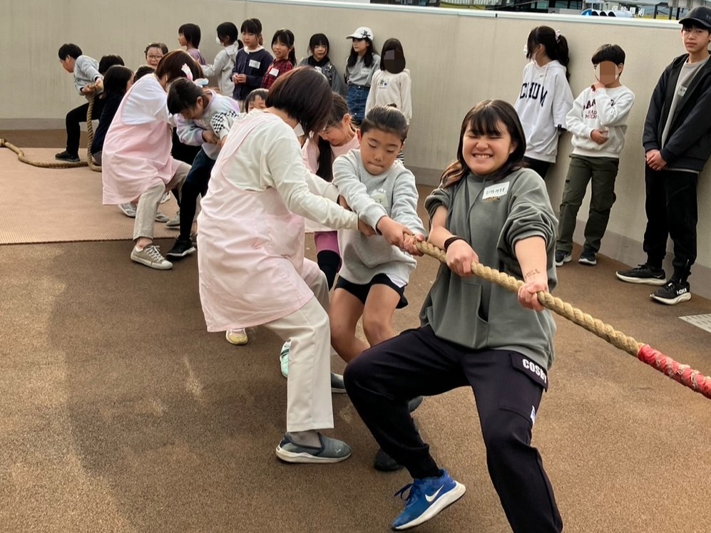 テラスで綱引きをして盛り上がりました。