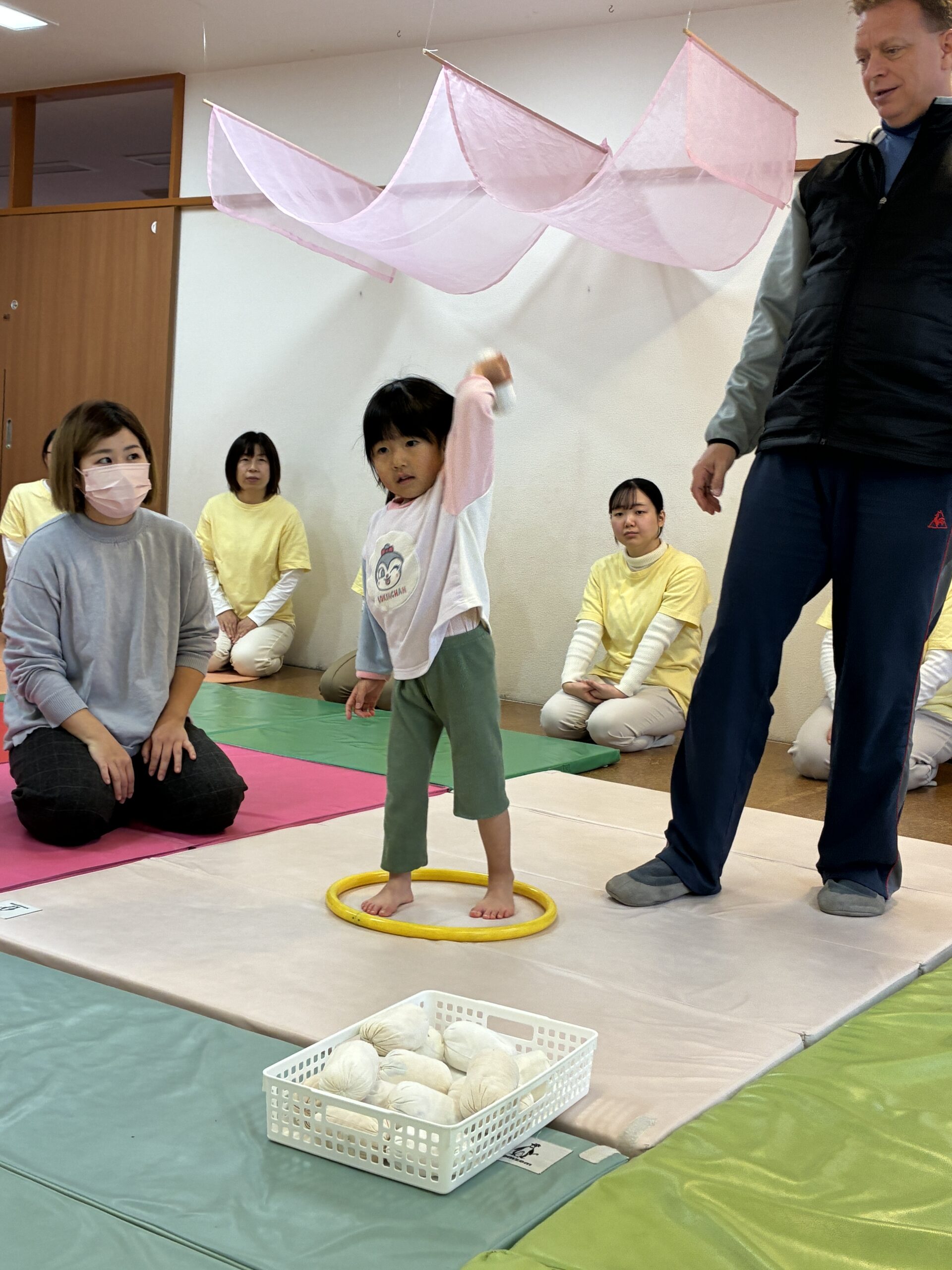 相模女子大学教授・東都ガーボル先生をお招きし、地域の親子を対象とした「発達体操」講座を開催しました。